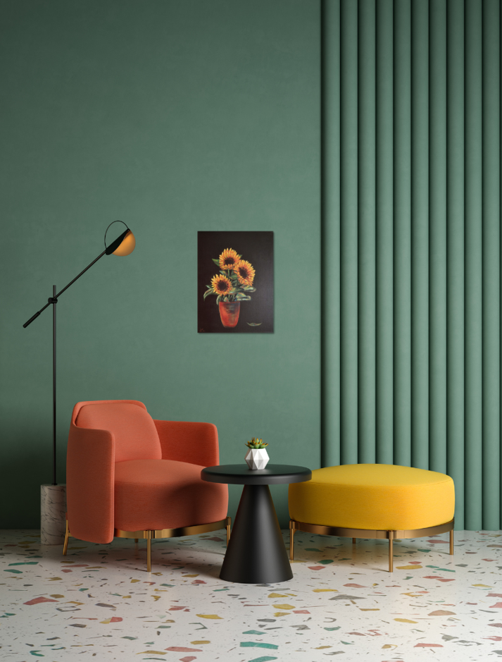Ze tmy prosvítají zlaté lístky slunečnic, přináší světlo tam, kde je přítmí. Slunce, které se ráno probouzí a večer usíná, se na Vás usmívá.
